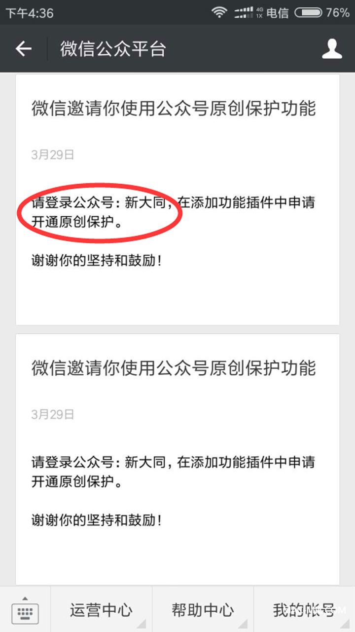 新大同”微信公眾平臺(tái)(sxdt_net)成為官方邀請(qǐng),獲得申請(qǐng)開通“原創(chuàng)聲明”功能。