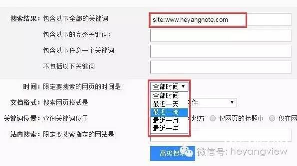 從上面的截圖我們可以看見,高級搜索中的細分做的非常的詳細,包含了不同的維度,如時間,匹配,位置,指定網(wǎng)站搜索等;