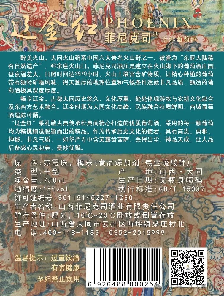 遼金時(shí)期為大同文化高峰之一,民族融合特質(zhì)鮮明,西域葡萄酒遺蹤可循。“遼金紅”系禮敬古典、傳承經(jīng)典而精心打造的優(yōu)質(zhì)葡萄酒,作為傳承歷史文化的使者,“遼金紅”具有高貴、典雅、神秘、非凡氣質(zhì),一如遼金古剎華嚴(yán)寺中含笑露齒菩薩,美得出塵,神品天成,讓廣大游客通過舌尖更能深入體驗(yàn)古都大同厚重魅力。