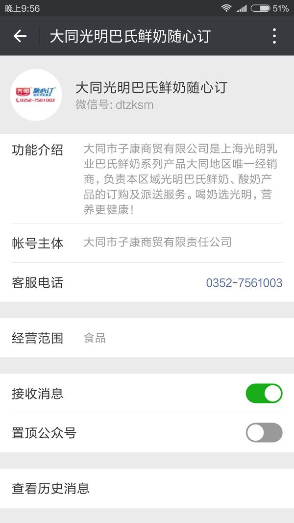 第一步:微信關(guān)注“大同光明巴氏鮮奶隨心訂”微信公眾平臺(tái)