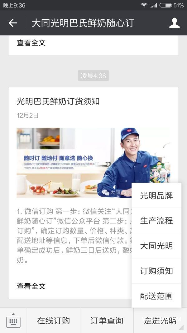★登錄大同光明巴氏鮮奶官方微信平臺(tái)付費(fèi);