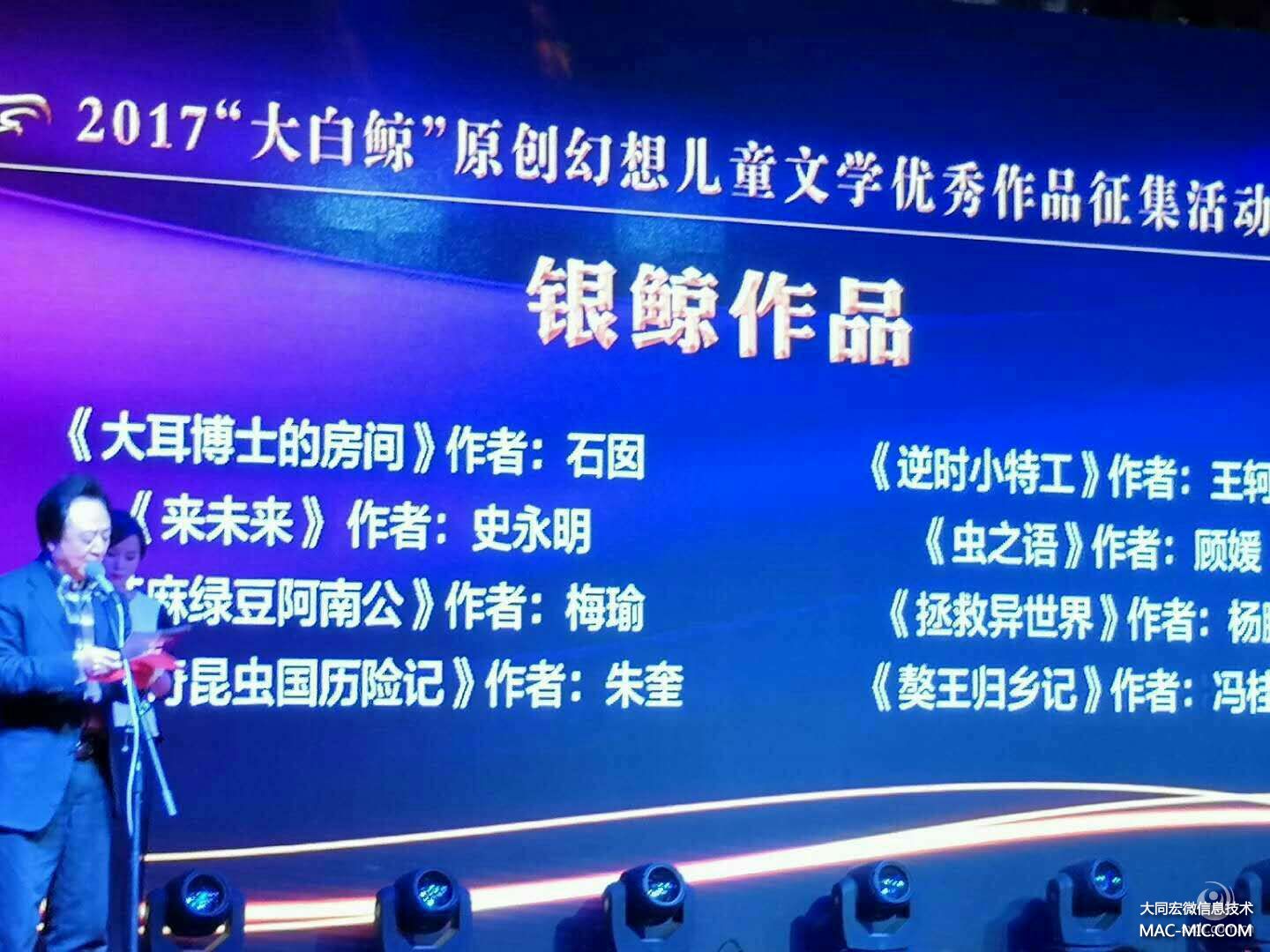 3月15日,2018“大白鯨”原創(chuàng)幻想兒童文學(xué)年度盛典在大連舉行。會上揭曉了2017“大白鯨”原創(chuàng)幻想兒童文學(xué)優(yōu)秀作品獲獎名單,其中大同兒童文學(xué)作家石囡憑借作品《大耳博士的房間》摘得2017“大白鯨”原創(chuàng)幻想兒童文學(xué)“銀鯨”獎。