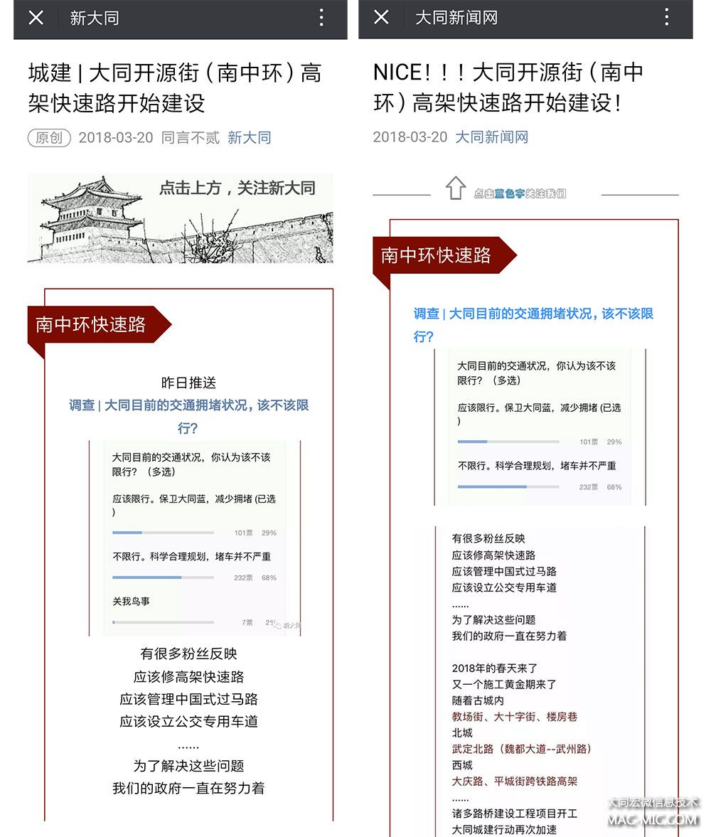 3月20日,《新大同》微信公眾平臺原創(chuàng)《城建 | 大同開源街(南中環(huán))高架快速路開始建設(shè)》一文被被大同知名官方媒體善意轉(zhuǎn)載(不加引號,筆者認為真善意也),雖說把圖片水印一張一張抹去裁剪了,雖說有些內(nèi)容也被屏蔽了,但最起碼,來源還標注了“新大同”,所以我相信他們小編也是熱愛大同的,愛大同的人那必須都是我們的戰(zhàn)友。信息時代網(wǎng)絡(luò)資源共享無可厚非,何況這不是正說明我們做的棒棒噠?嫡出與私生子,流淌的不還都是咱的血脈?
