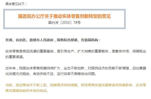 國務(wù)院辦公廳關(guān)于推動(dòng)實(shí)體零售創(chuàng)新轉(zhuǎn)型的意見