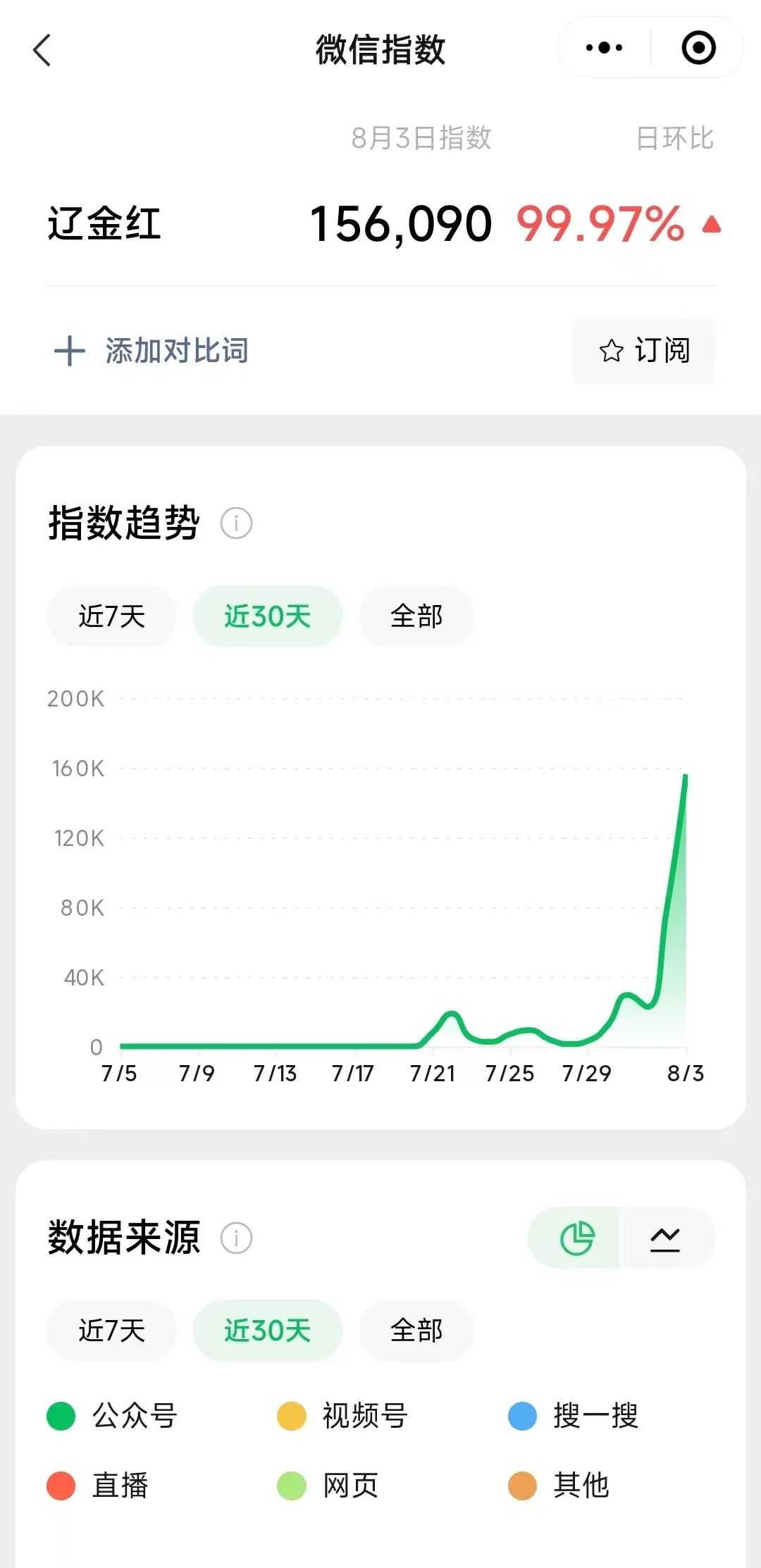 遼金紅微信指數(shù)已經(jīng)達(dá)到156090,